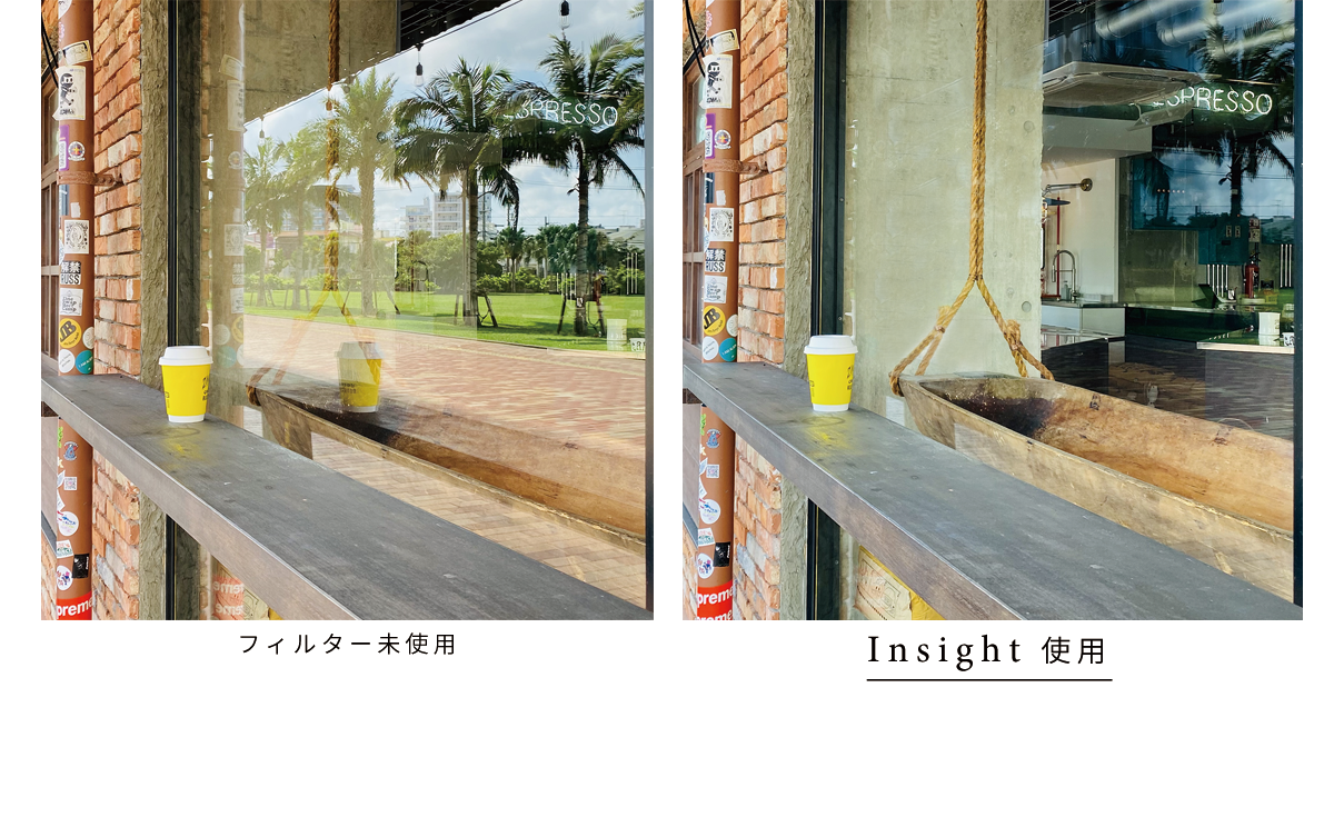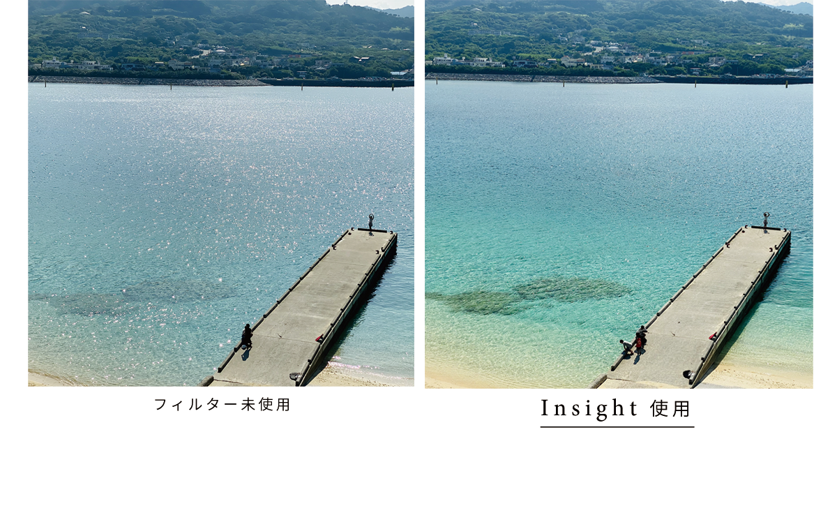 THE emoの【Insight】は、光の反射を軽減させて、被写体の本来の姿を撮影することができる、スマホカメラ用のCPLフィルター。まるでカメラに洞察力(=インサイト)が宿るような、頼れるアイテムです。